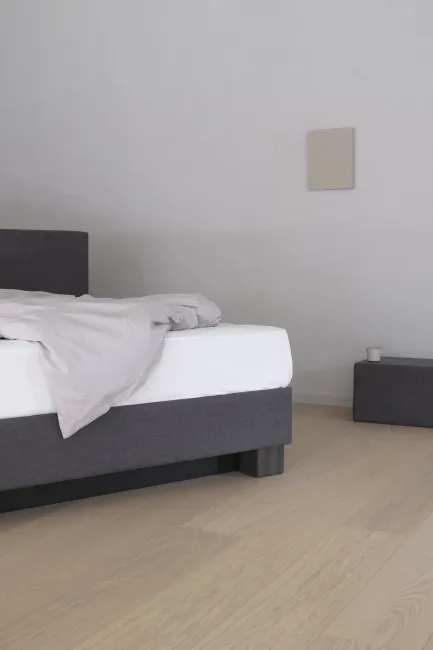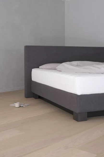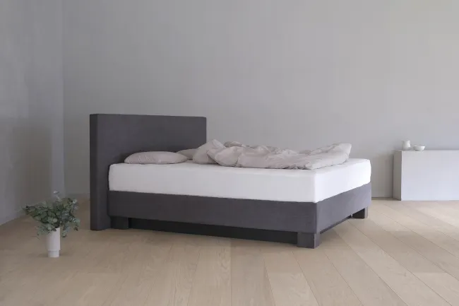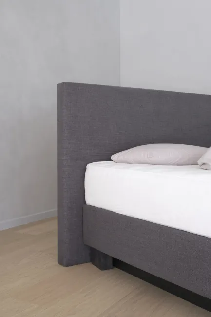 Box Bed è un letto ad acqua imbottito di semplice eleganza. Ispirato a un moderno look a molle insacchettate, il letto è caratterizzato da una maggiore visibilità del materasso, che insieme alla struttura crea una combinazione rilassante di equilibrio estetico. Il materasso voluminoso del BoxBed garantisce un sonno eccellente, mentre il nostro impegno costante per la sostenibilità assicura una soluzione di riposo eco-consapevole. Abbracciate il BoxBed Akva per un sonno davvero indulgente e rigenerante che unisce comfort, design e lusso responsabile.
